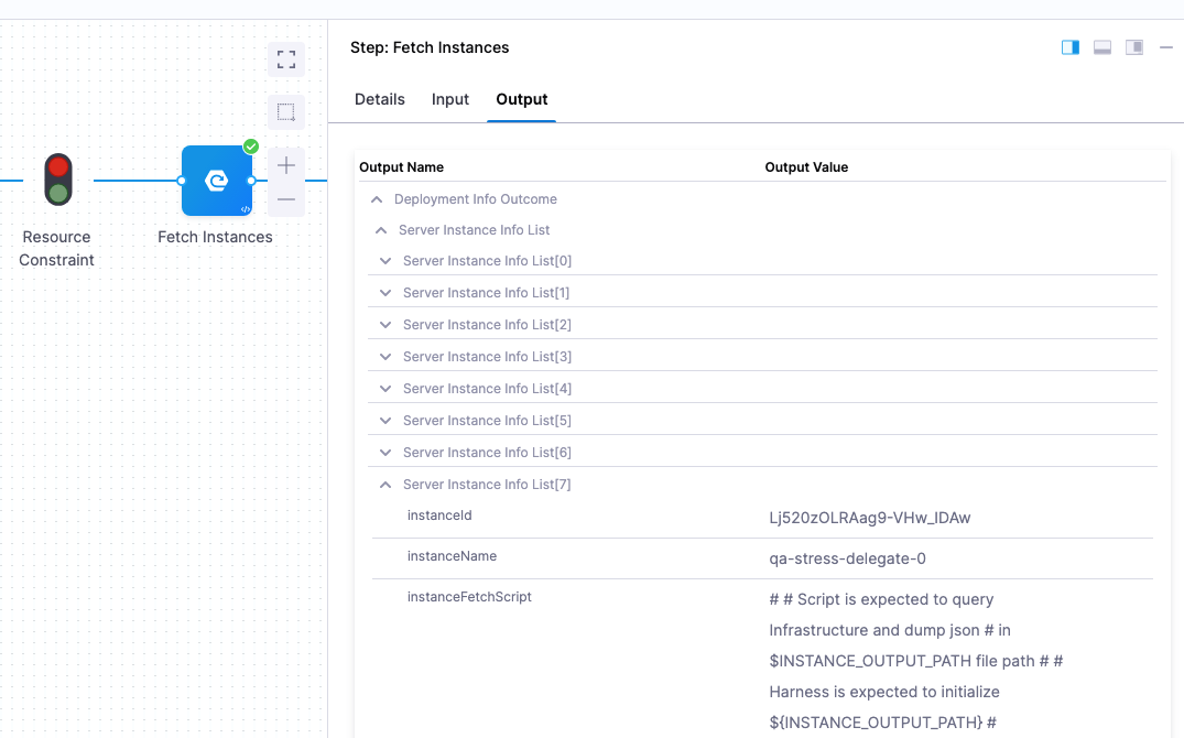 3. In your Harness Pipeline stage Execution, review the automatically added Fetch Instances step, and move it to wherever you want to execute the script from your Deployment Template.