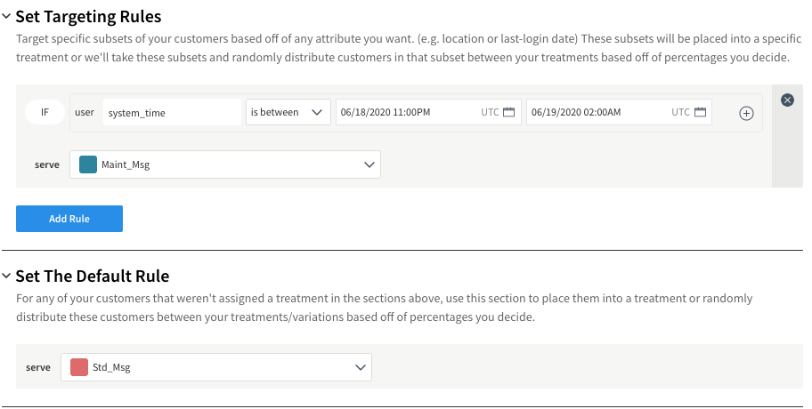 • Click Add attribute based targeting rules to assign individual users or segments to a selected treatment or percentage distribution.