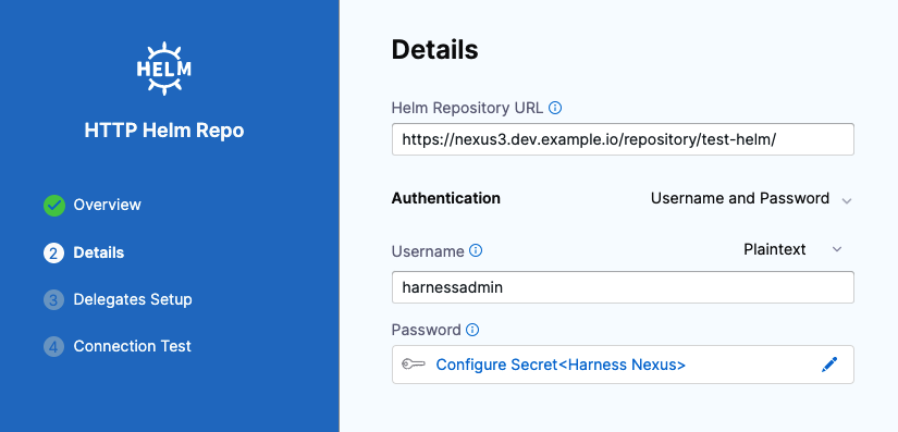 This topic provides settings and permissions for the HTTP Helm Repo Connector.