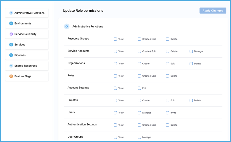Edit the role's permissions, and then select Apply Changes. For details about specific permissions, go to the Permissions reference.