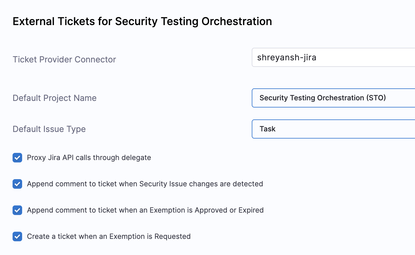Enable this option if your Jira instance is self-hosted or behind a proxy. This allows STO to make API calls through the Harness Delegate.