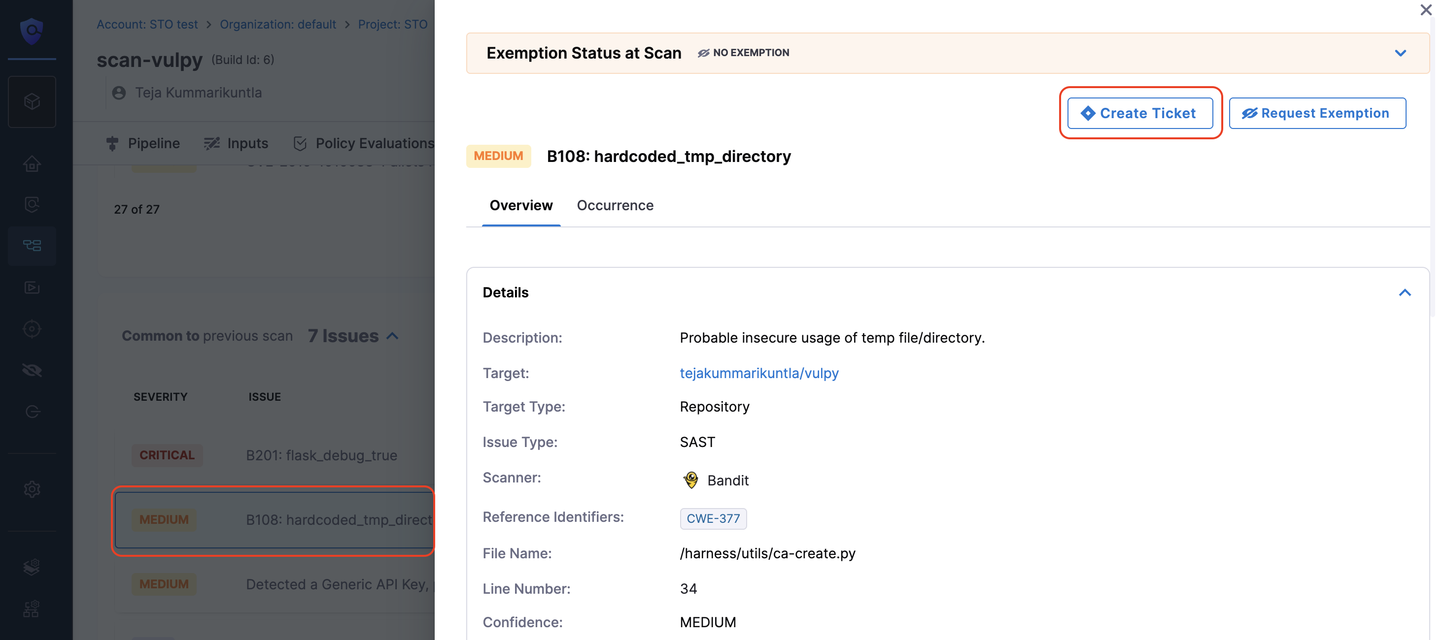 • This feature is behind the feature flag STO_EXEMPTION_TICKET. Contact Harness Support to enable this flag.