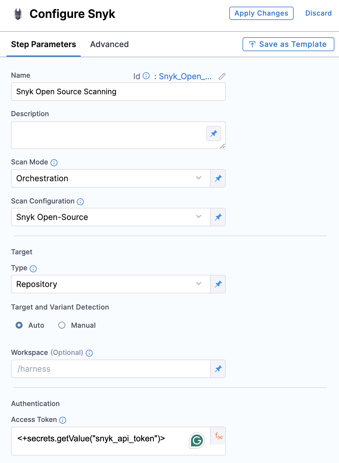 SNYK_TOKEN = <+secrets.getValue("snyk_api_token")>