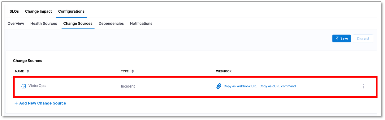 1. Add VictorOps as a custom change source in the Harness SRM monitored service and generate a webhook.