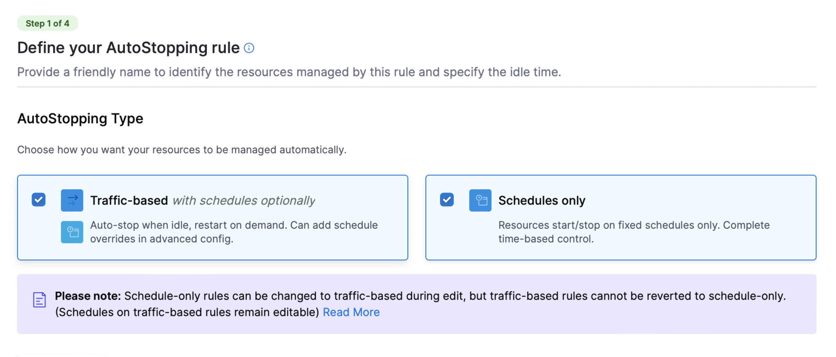 AutoStopping rules cannot be created in a disabled state. This option was not available in the UI but could be done through the API to create disabled rules. Moving forward, any attempt to create or edit a disabled rule will result in a validation error. AutoStopping rules can now only be disabled after creation.