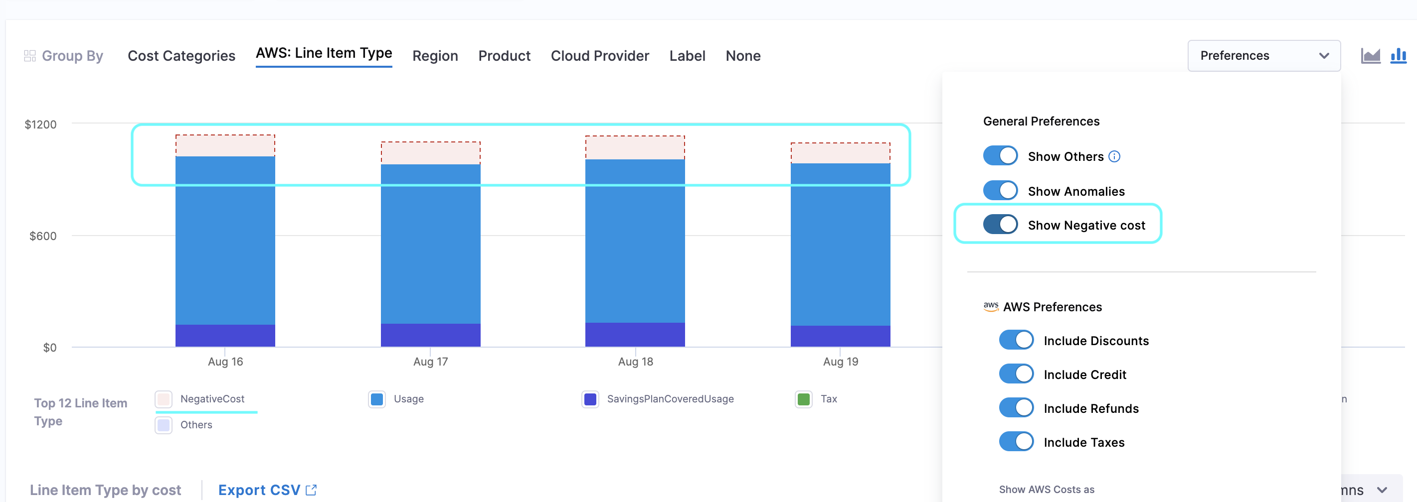“Others” cost preference now supports negative values: Previously, when Show Others (not in top 12) was enabled, negative costs in the “Others” category were shown as zero. We’ve fixed this—negative values will now display correctly in Perspectives. [CCM-28678]