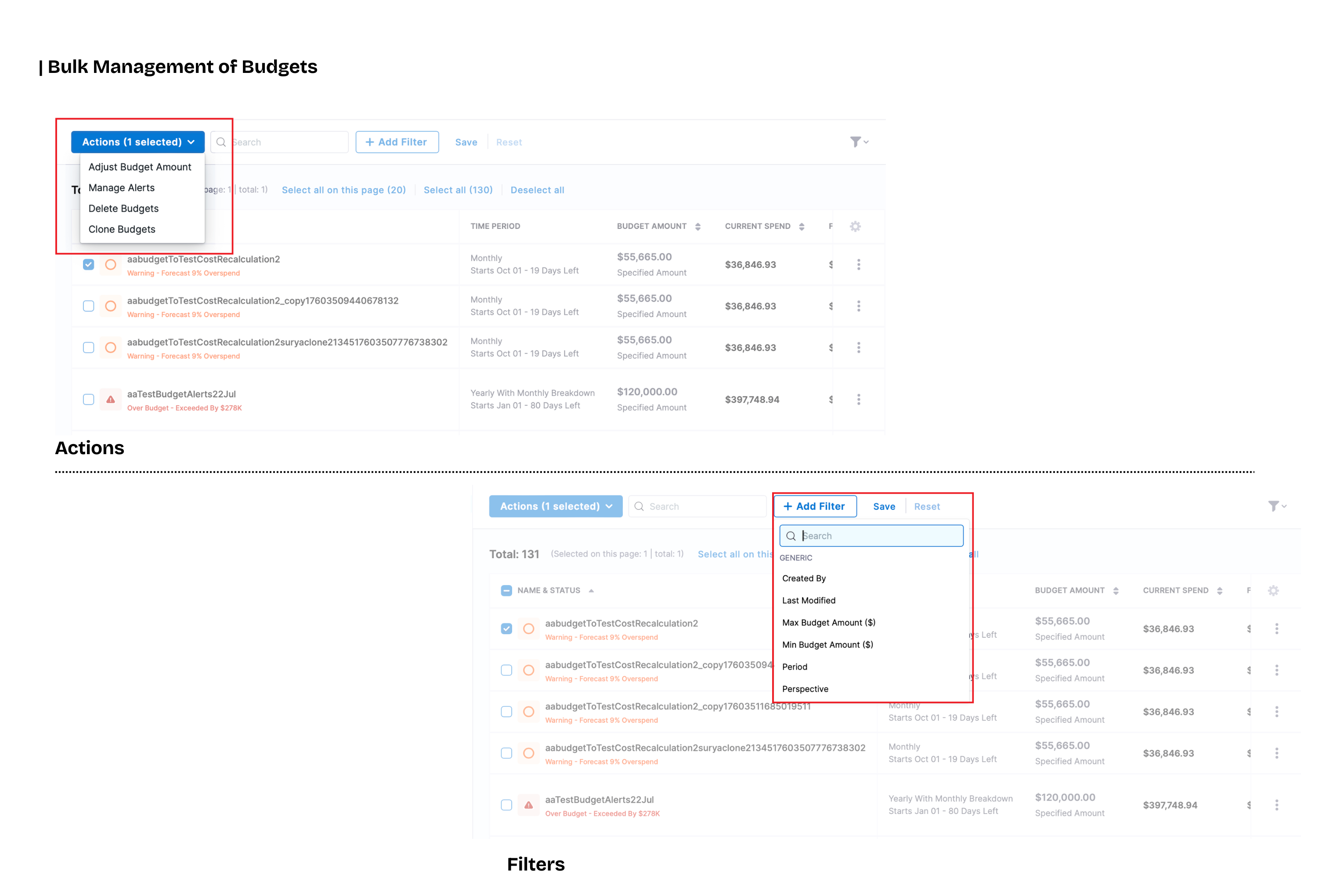Folder ID Now Mandatory for Budget Creation via API: To ensure better organization and visibility of budgets in the UI, the folderId field is now mandatory when creating budgets through the API. Previously, budgets created without a folder ID did not appear in the UI, leading to inconsistencies in reporting. With this update, any API request that omits the folderId will return an error. This change ensures that all budgets are created under the correct folders, improving overall organization, visibility, and reporting accuracy. Users integrating with the API should update their automation or scripts to include the folderId parameter to avoid errors during budget creation. [CCM-27057]