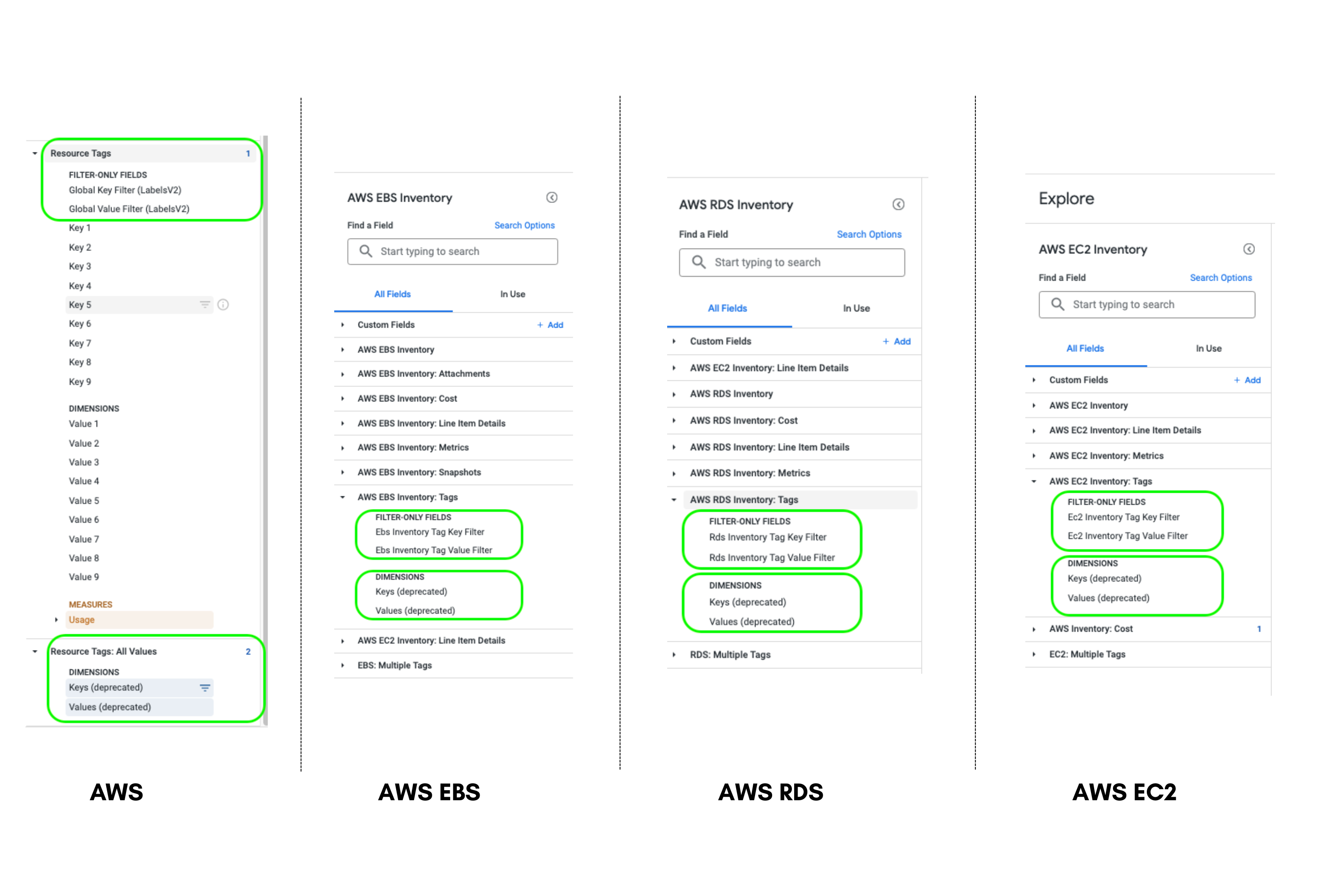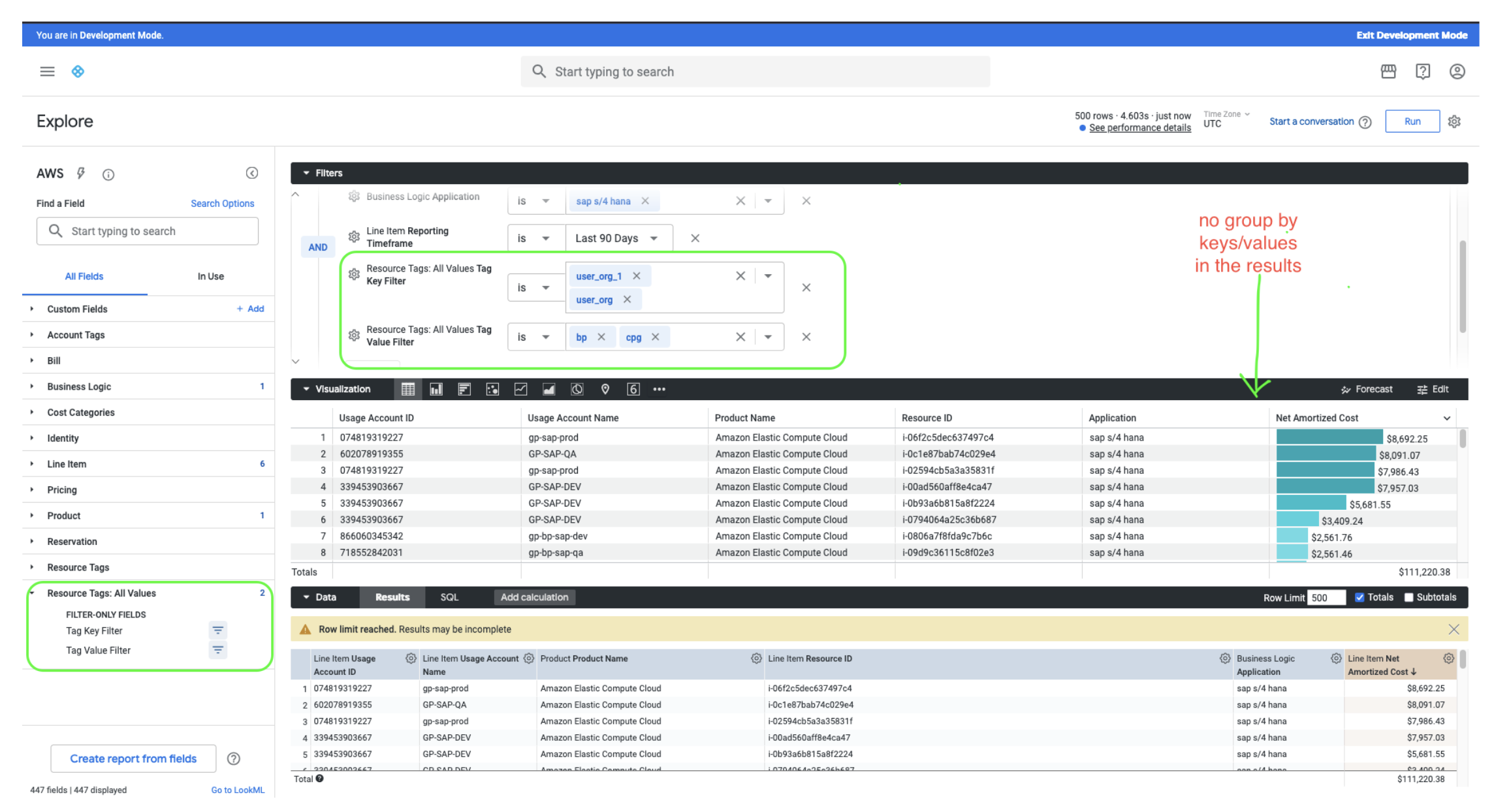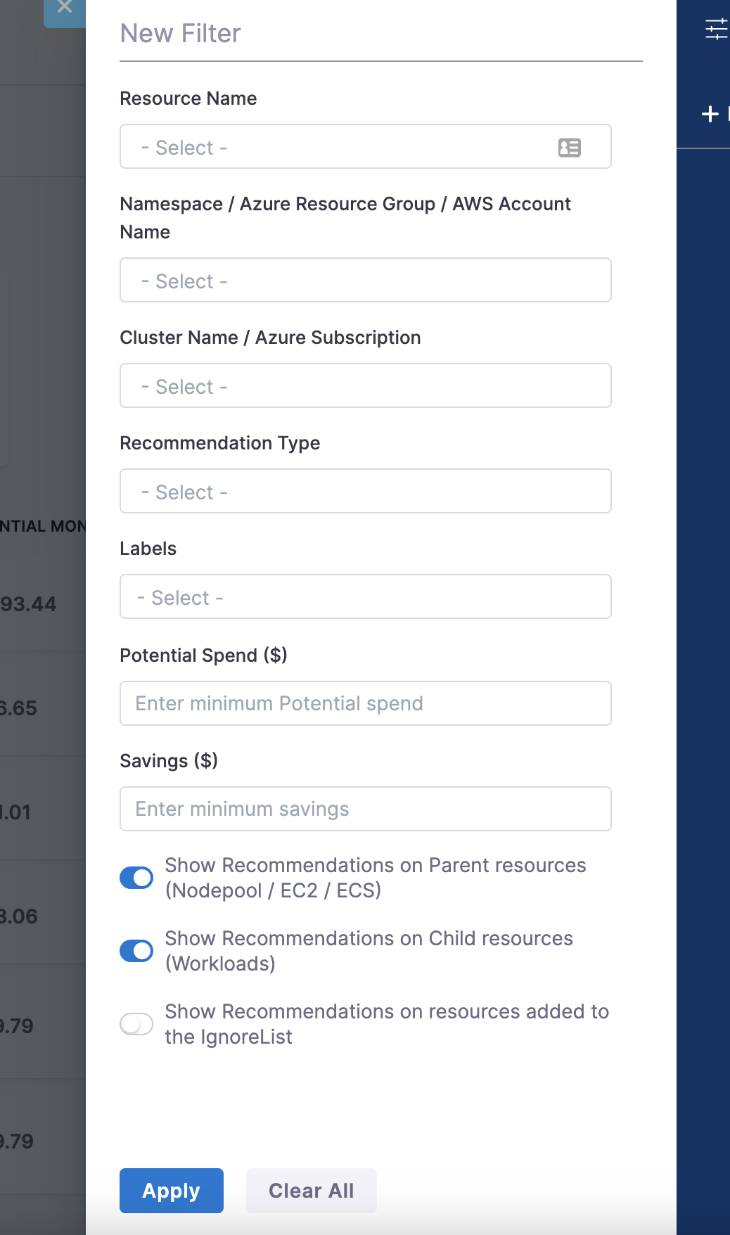 - Optimized Filter Fields: Users can filter AWS billing data by one or more key/value pairs using the "Resource Tags: All Values" fields, which have been optimized for better performance