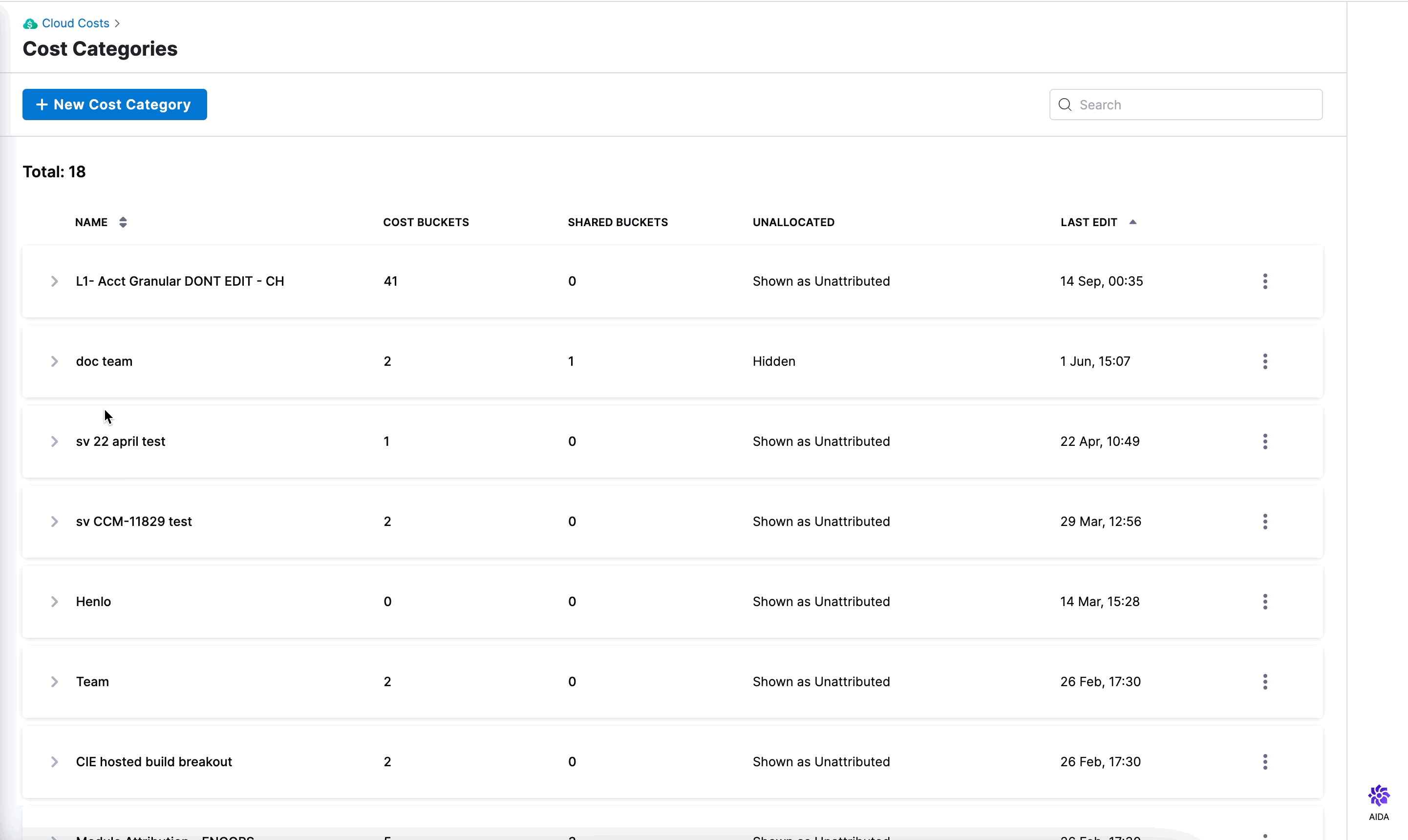 You can now search Cost Categories in your chart.