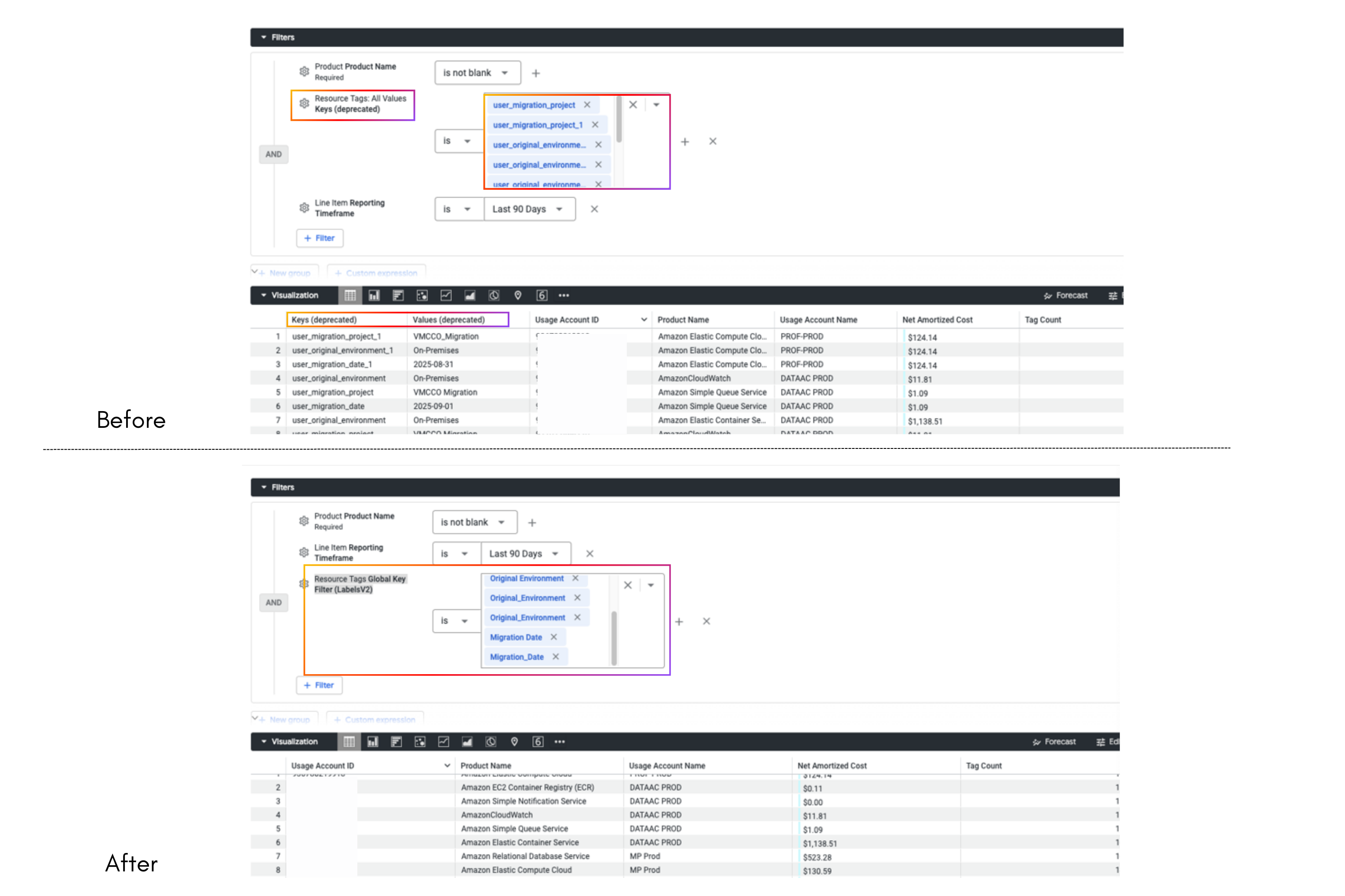 - Optimized Tag Filtering: We've introduced an improved approach for filtering data using resource tag values, simplifying queries and reducing load times.