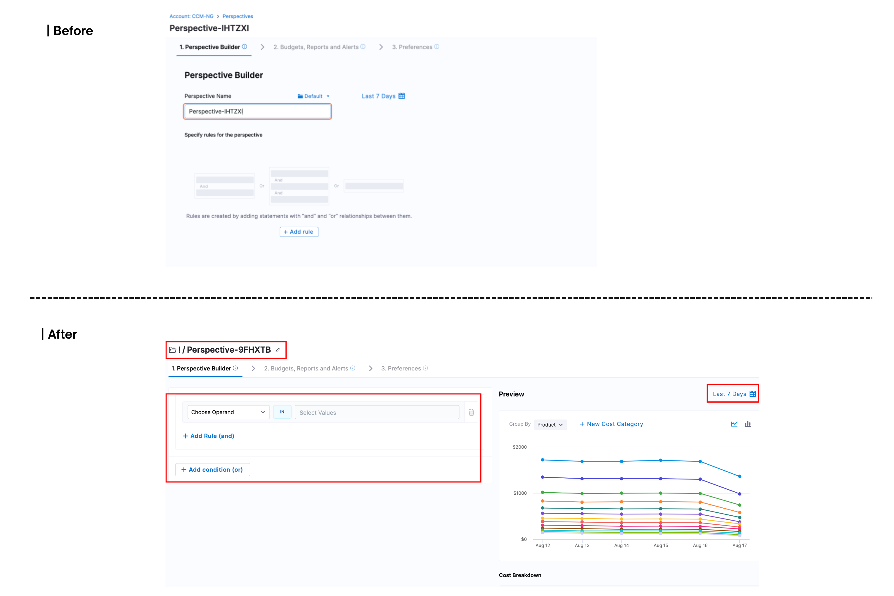 **Persistent behaviour across Perspective Rules **: Previously, when adding new rules, the Perspective’s default group-by and time range values were being reset to their defaults. This has now been fixed — they will persist across rule changes. [CCM-25493]