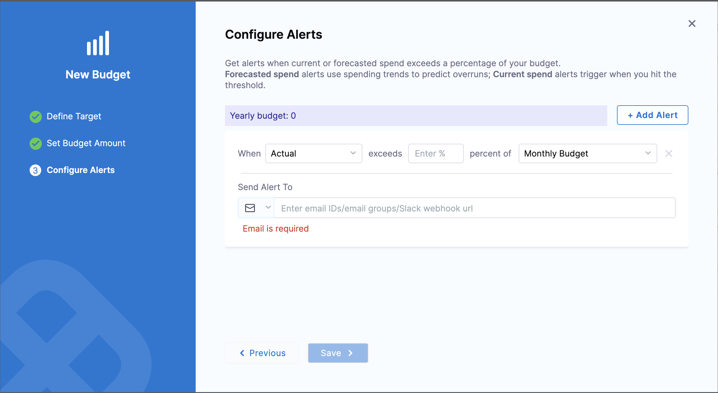 Slack notifications for Budgets (CCM-7816) You can now set the notification channel to Slack and add multiple webhook URLs when creating a budget. For more information, refer to Create a Budget.