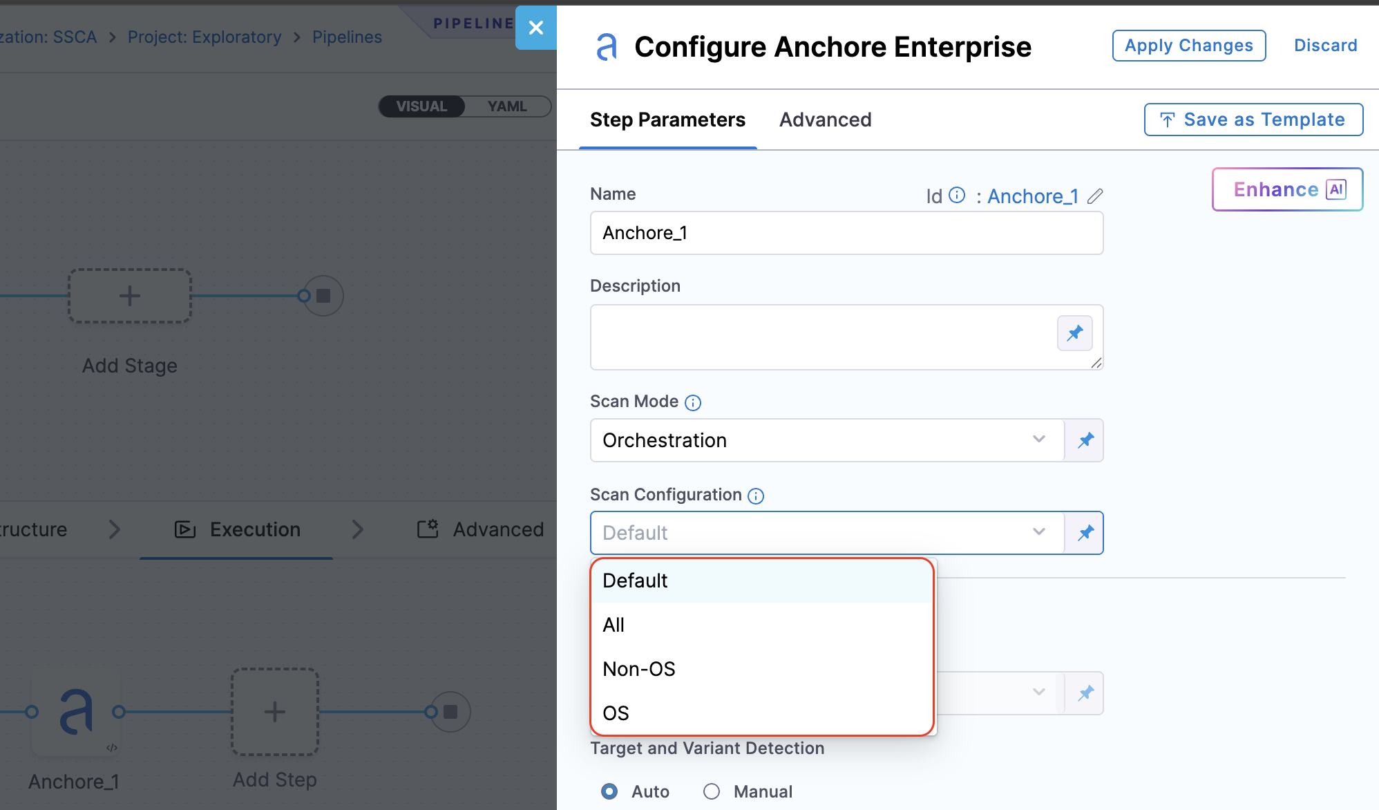 Added new scan configurations for Orchestration and Extraction modes in the Anchore Enterprise step.