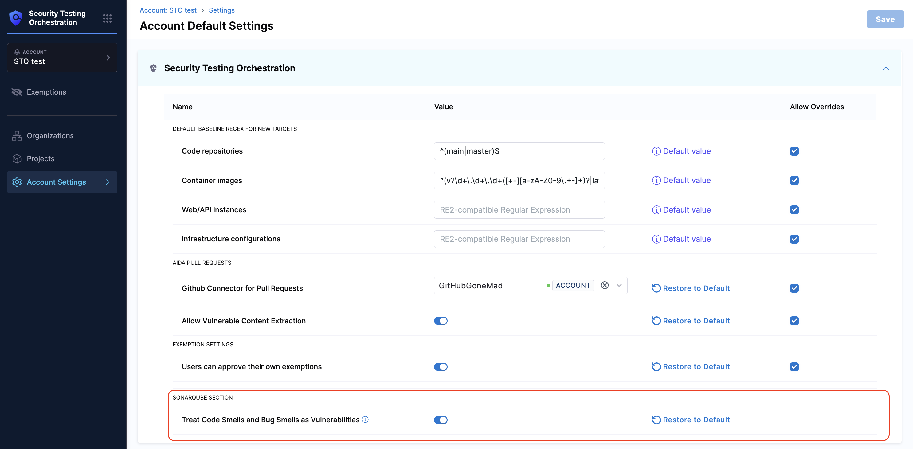 - This is controlled by the Treat Code Smells and Bug Smells as Vulnerabilities setting (account-level, disabled by default). Refer to the SonarQube documentation for more details.